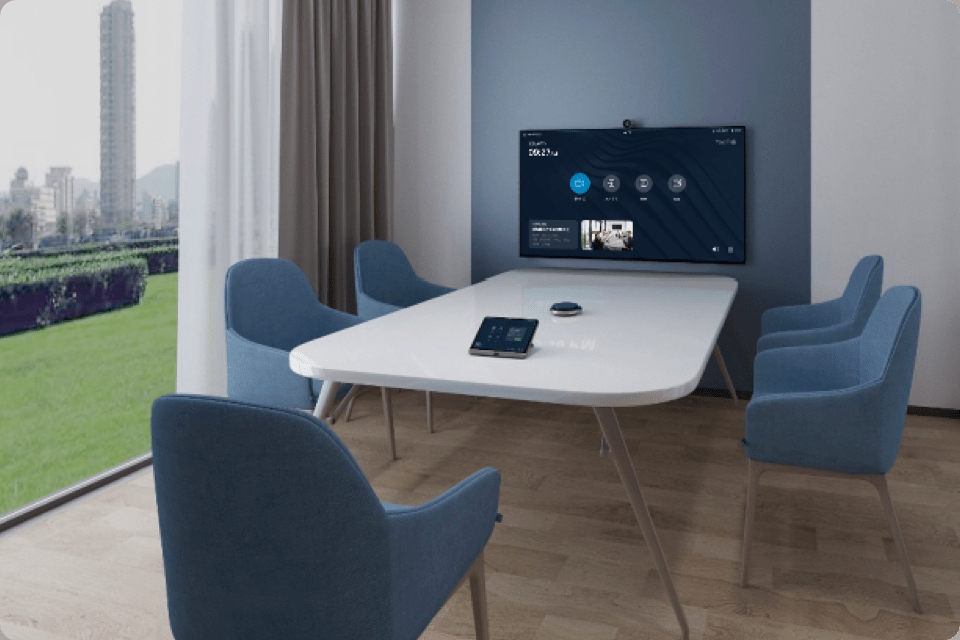 智能會議平板+視頻會議終端+ 視頻會議音響。這個方案的優(yōu)勢:性能穩(wěn)定,視頻會議終端采用專業(yè)音視頻解碼技術(shù),視頻溝通不卡頓,高清廣角變焦攝像頭覆蓋全場。因為會議室面積較大了,就需要專業(yè)的視頻會議音響,讓音質(zhì)不受其他雜音影響,能更好地拾音和擴音。